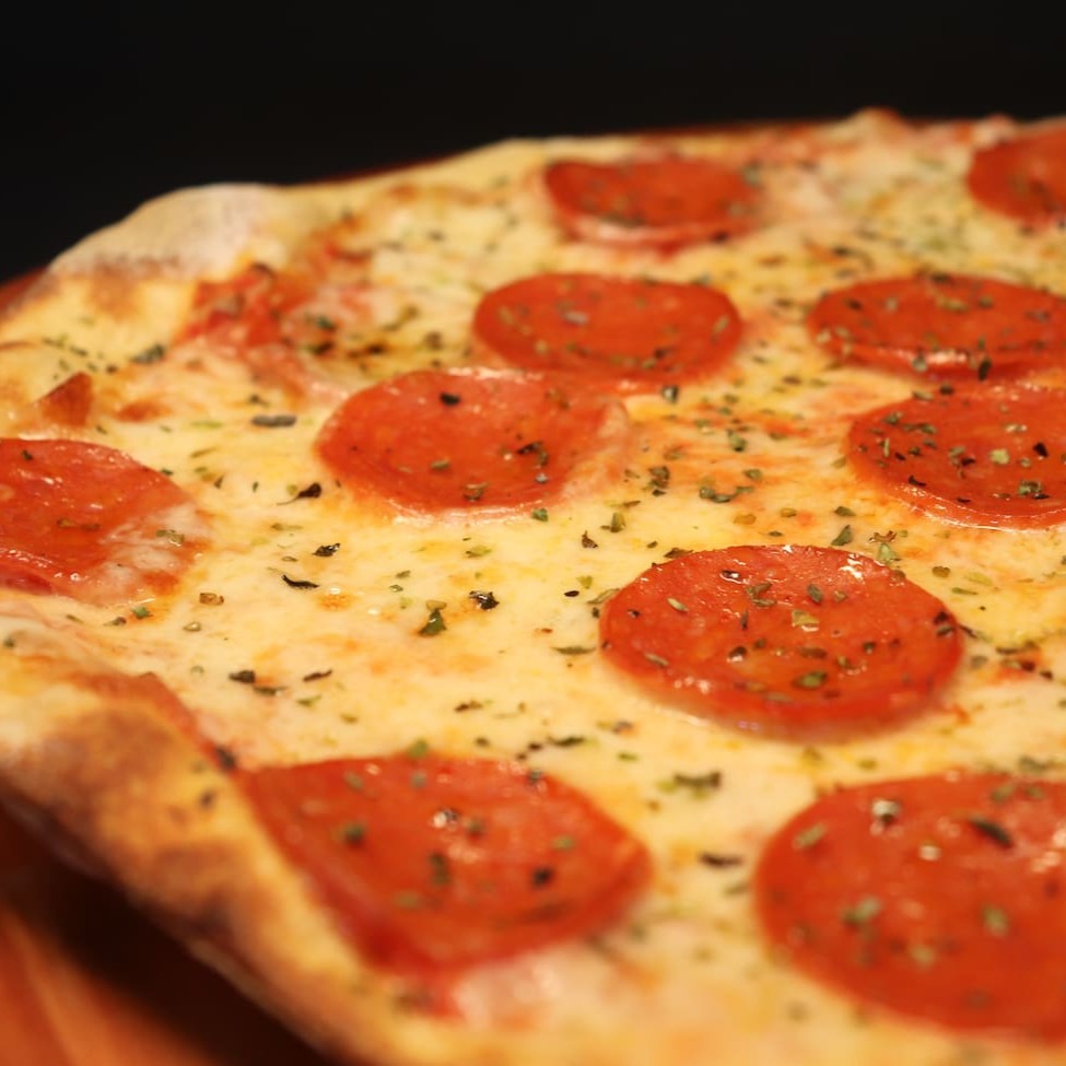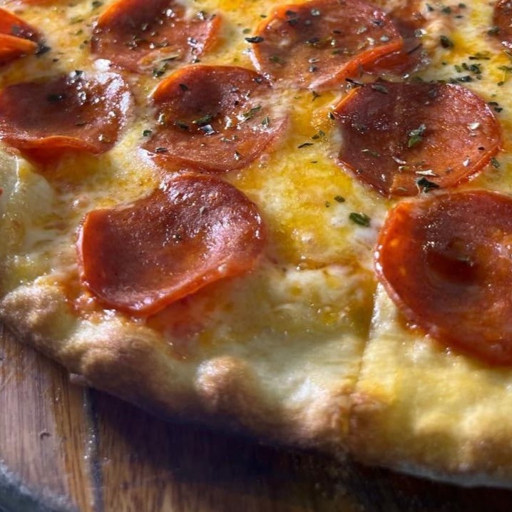 Massa fina com borda crocante, molho artesanal, mozzarella derretida, rodelas de pepperoni e orégano.