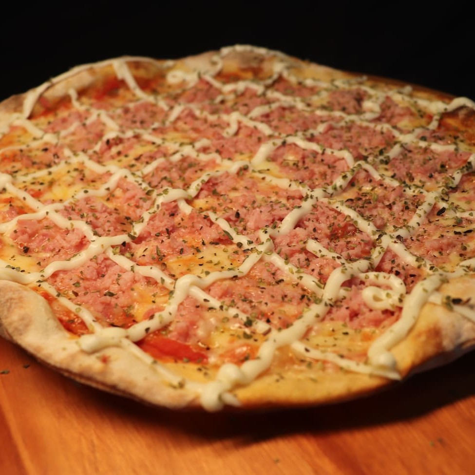 Massa fina com borda crocante, molho artesanal, mozzarella derretida, presunto ralado, Catupiry Original e orégano.