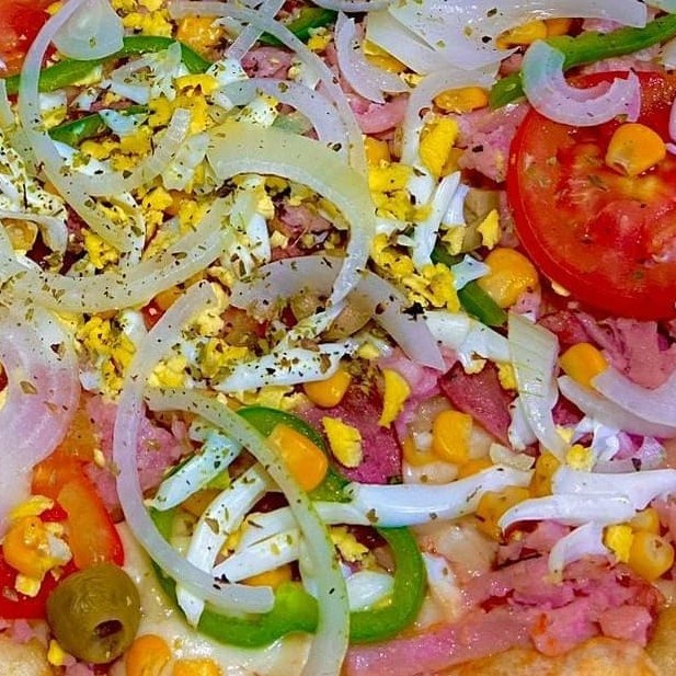Pizza saborosa com molho de tomate , mussarela , calabresa , cebola e orégano, perfeita para quem gosta de sabor marcante.