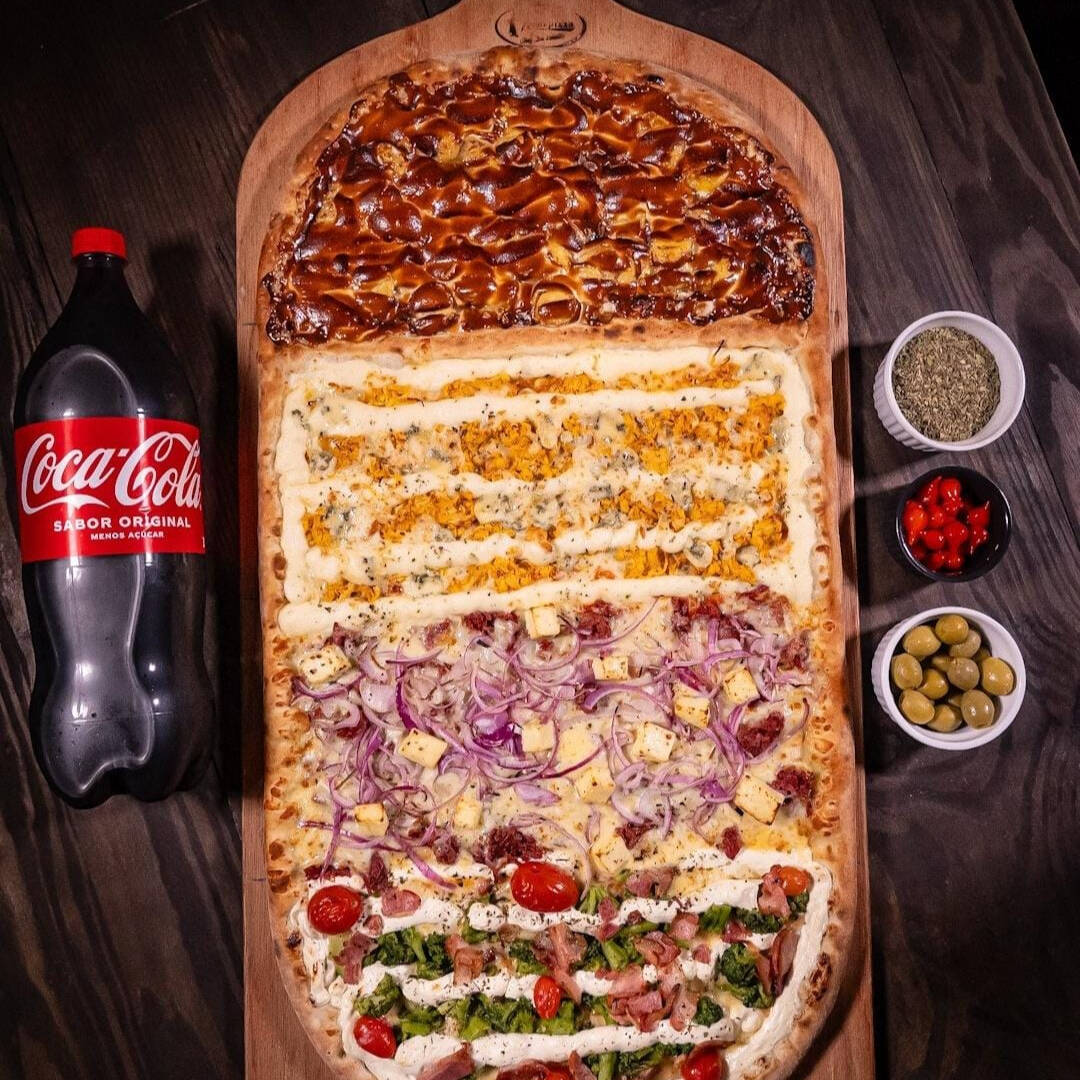 Desfrute da nossa Pizza Trem, uma pizza requintada de categoria 70x35cm. Preparada com uma massa de fermentação prolongada, que acentua o sabor e a textura inigualável, e ingredientes frescos e selecionados para garantir a mais alta qualidade. Esta criação culinária promete uma explosão de sabor que irá encantar o seu paladar. Perfeita para se deliciar em qualquer momento, é a escolha ideal para os verdadeiros apreciadores de pizza.