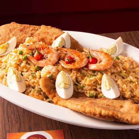 Risoto de camarão com filé de linguado frito