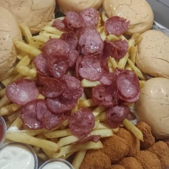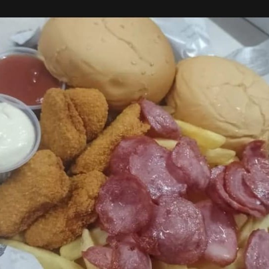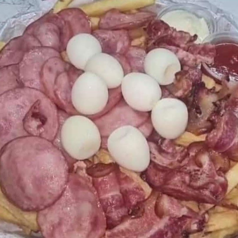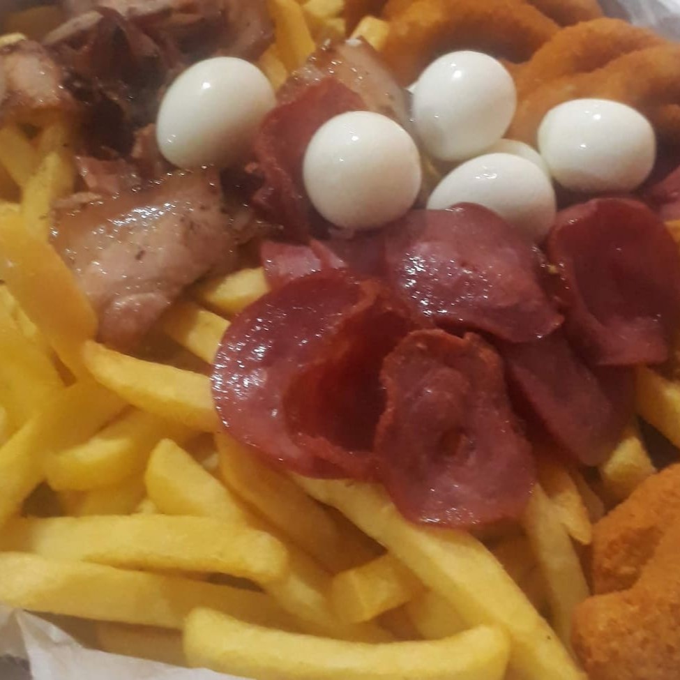 Batatas fritas,calabresas fritas, bacon, anel de cebola, Nuggets, ovo de codorna,maionese ,ketchup