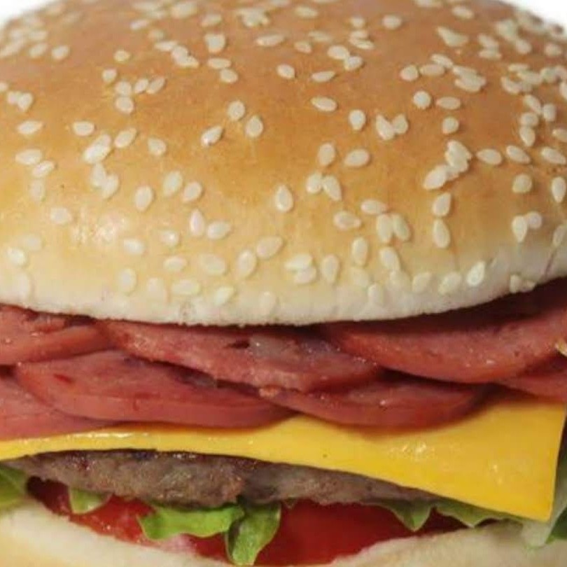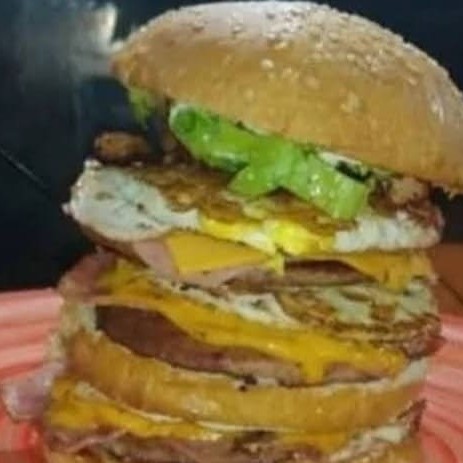Pão, 03 carnes de Hambúrguer picanha, 03 ovos, queijo cheddar, Presunto, bacon,alface,maionese, ketchup