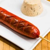 Espeto de salsichão.