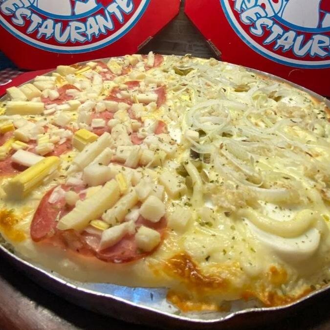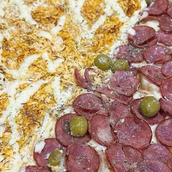 Na dúvida entre frango com requeijão e calabresa? Fica tranquilo, essa pizza meio a meio traz o melhor dos dois mundos! De um lado, o frango desfiado com requeijão cremoso que derrete na boca. Do outro, a calabresa bem temperada com aquele toque levemente picante que a gente ama. Tudo isso sobre uma massa macia, assada no ponto certo. É pra pedir e se apaixonar!