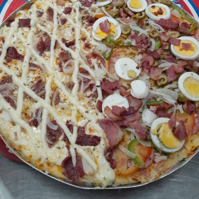 Essa pizza meio a meio é perfeita pra quem ama tradição com um toque especial. De um lado, carne seca desfiada com requeijão cremoso – combinação nordestina que conquista no primeiro pedaço. Do outro, a clássica portuguesa com presunto, ovos, cebola, azeitonas e muito sabor. Uma união de sabores que agrada todos os paladares!