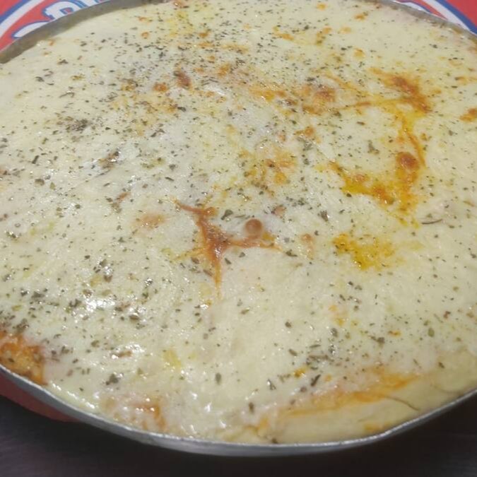 A pizza de mussarela é uma clássica combinação de massa, molho de tomate, queijo mussarela derretido e um toque de orégano, simples e deliciosa.