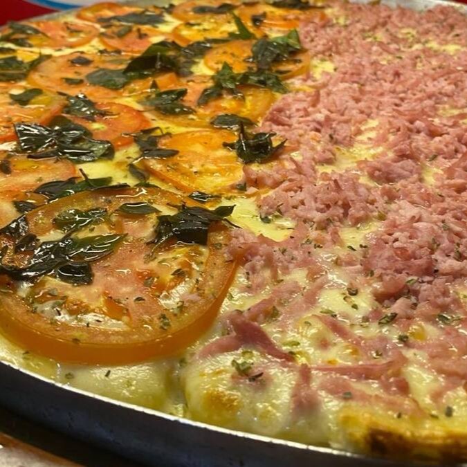 Uma deliciosa combinação de molho de tomate, queijo derretido e presunto suculento, finalizada com um toque de orégano.