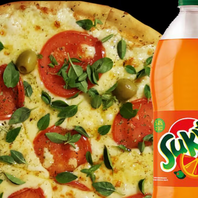 Uma pizza salgada gigante de 40cm com o sabor que você escolher, acompanhada de uma Coca-Cola geladinha de 1,5l pra refrescar. E pra fechar com chave de ouro, uma pizza média de banana com aquele toque doce e especial que conquista no primeiro pedaço. Perfeito pra compartilhar e aproveitar do começo ao fim!