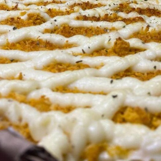 Essa pizza meio a meio é puro carinho em forma de sabor! Metade com frango desfiado e requeijão cremoso, um clássico que nunca decepciona. A outra metade é a queridinha dos amantes de queijo: a irresistível 4 queijos, com mussarela, Catupiry, parmesão e gorgonzola derretendo a cada mordida. Uma combinação perfeita pra quem ama muito recheio e muito sabor!