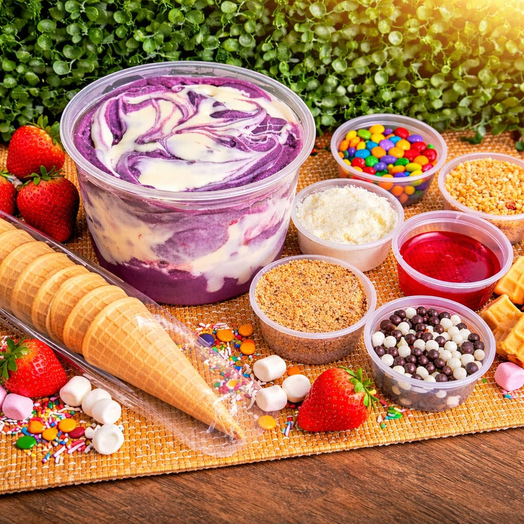 Pote de 1 Litro + 3 Complementos + 1 Cobertura + 5 Casquinha de Biscoito