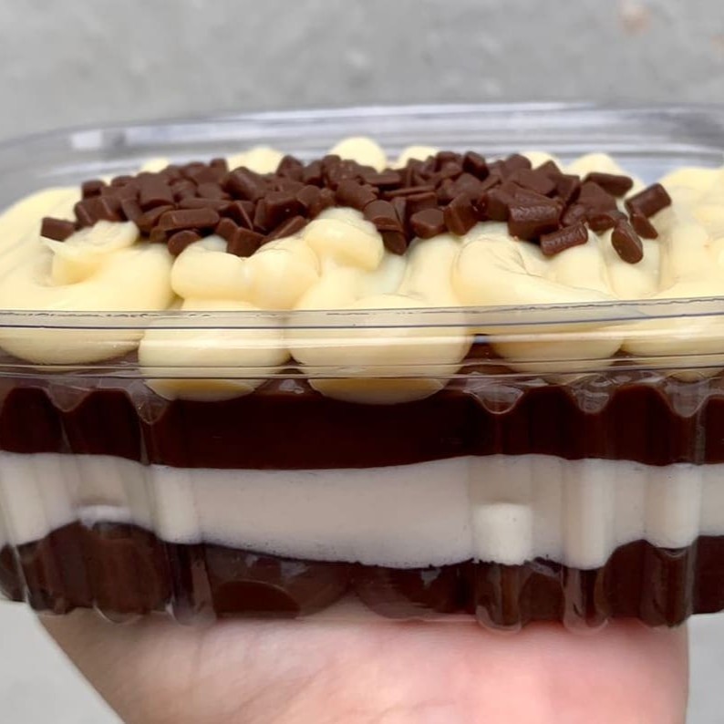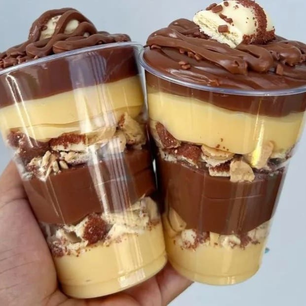 Composto por: Brigadeiro 50% Brigadeiro de Ninho Mousse de Ninho Biscoito maisena Granulé melken Perfeito para você se deliciar.