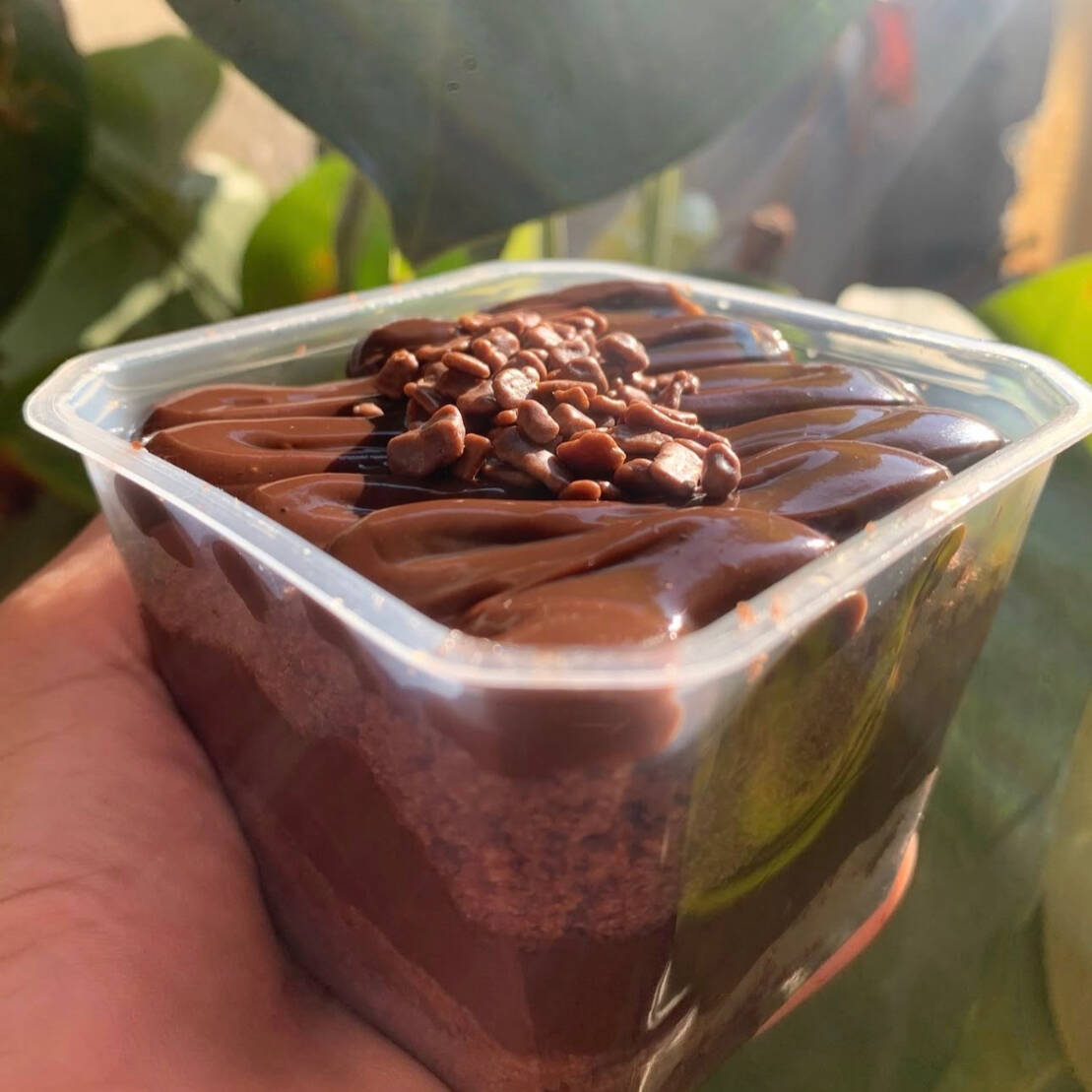 Nosso bolo de pote é pra quem ama um recheio de chocolate, Massa molhadinha sem exagero de calda e finalizado com granulé de chocolate nobre!