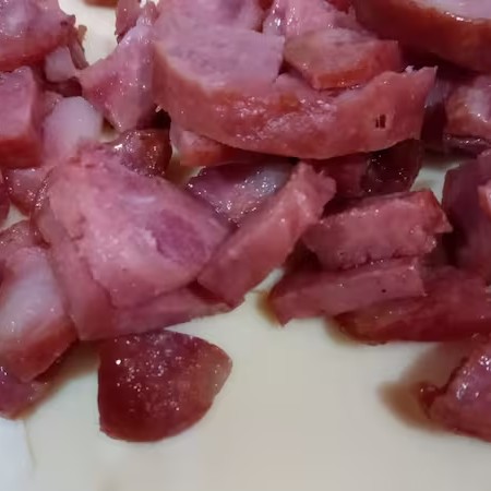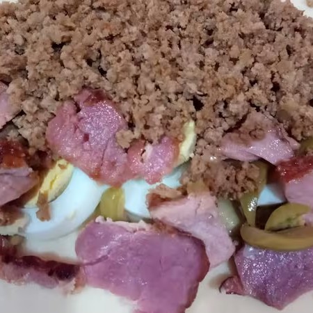 Carne, Ovos, Azeitona e Bacon.