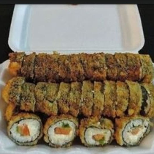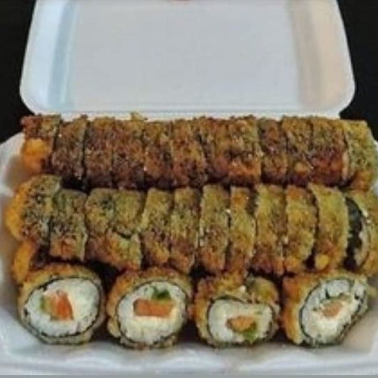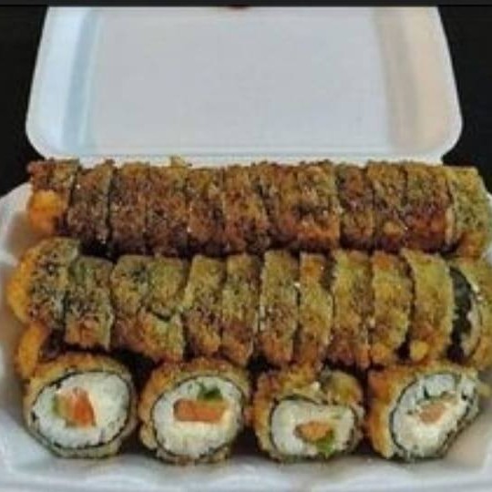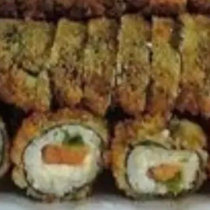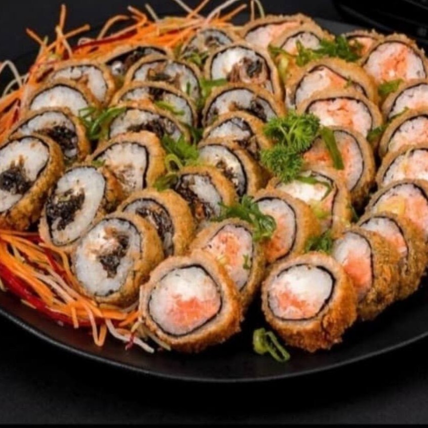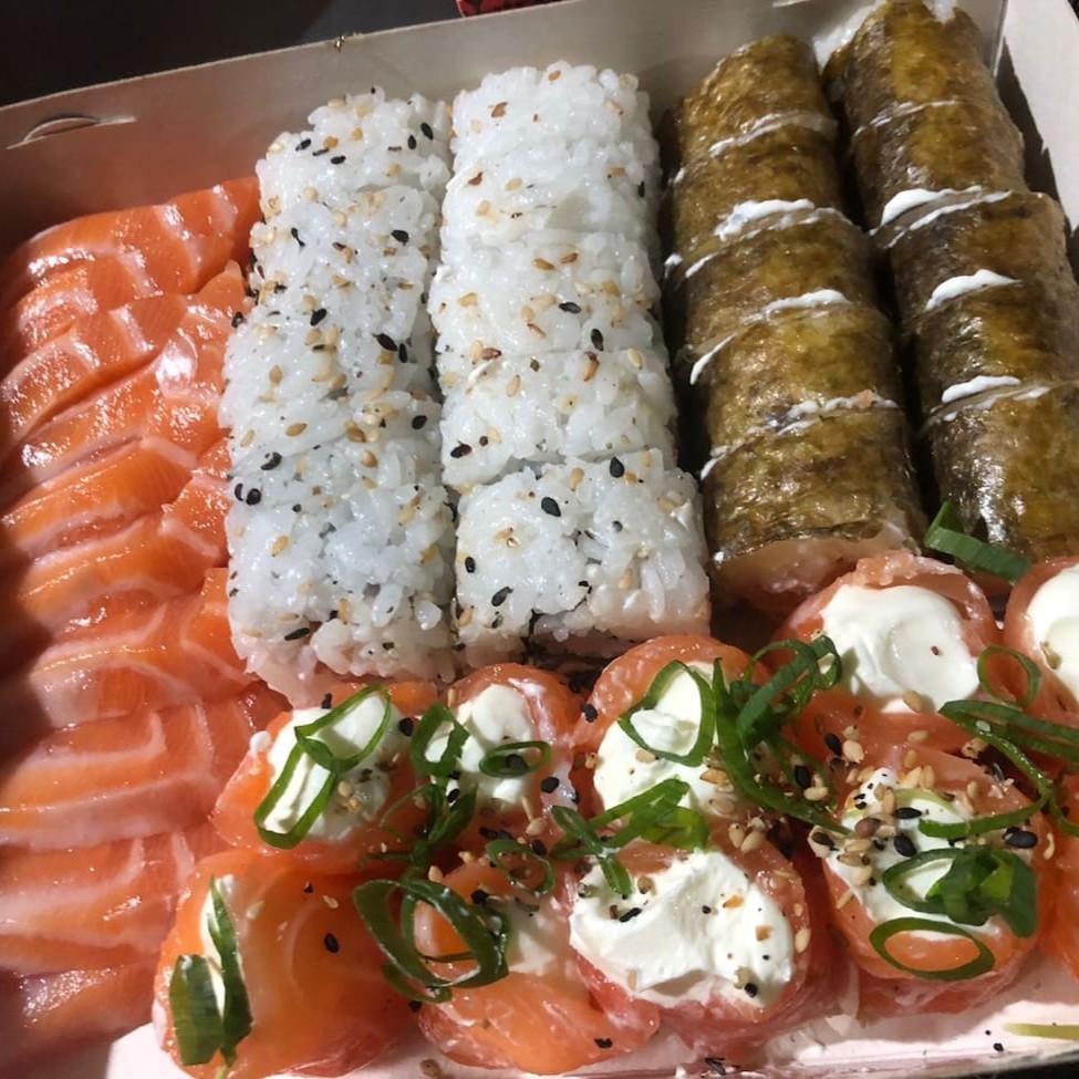 10 uramak Califórnia (frutas ,cru) 10 Filadélfia salmão (cru) 10 Filadélfia skim (recheio frito) 10 hot salmão (frito)