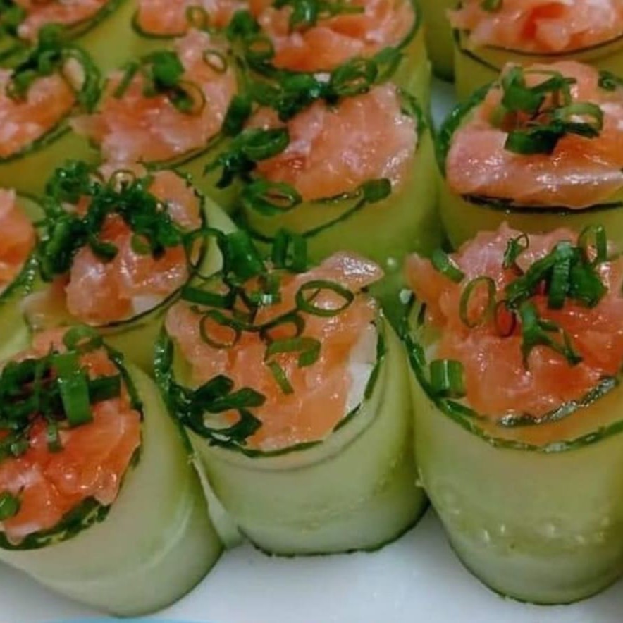 Pepino envolvido no creme thess e cebolinha salmão