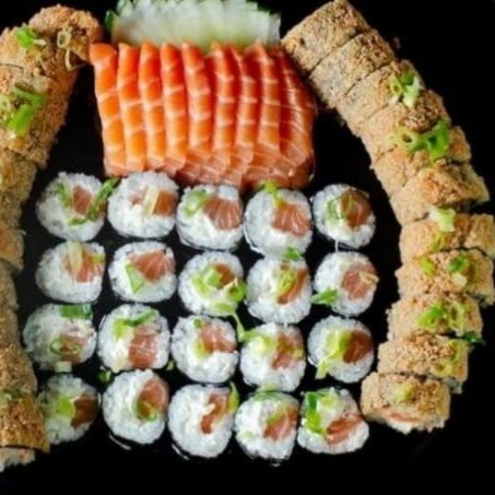 20 sashimis salmao,15 filadelfias salmao,24 hot skim,24 hot salmao