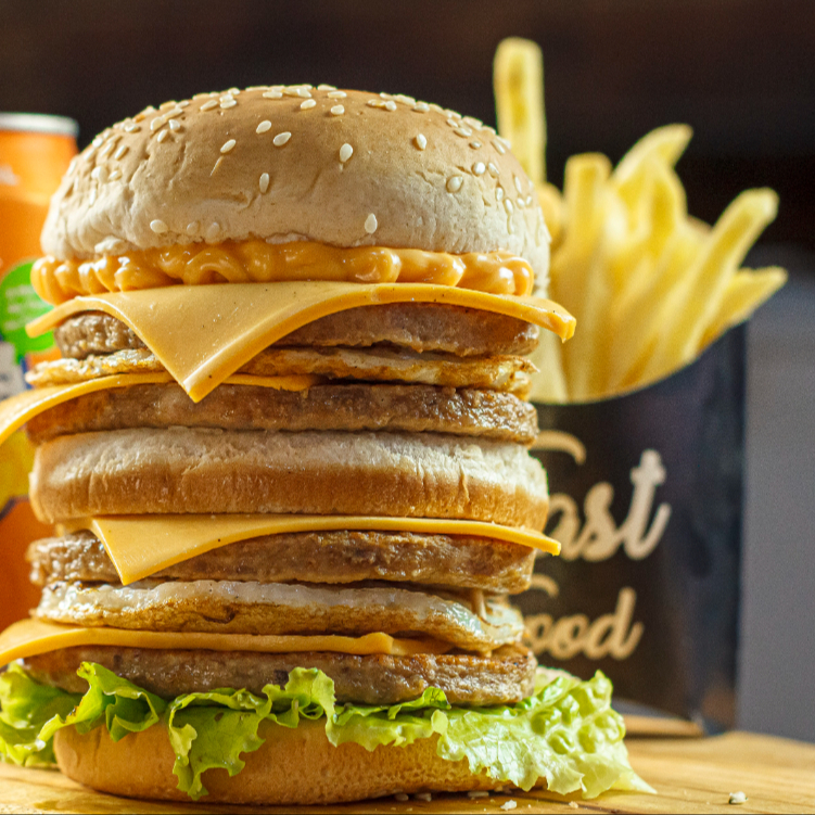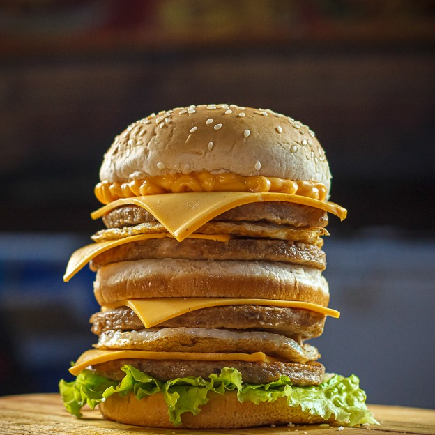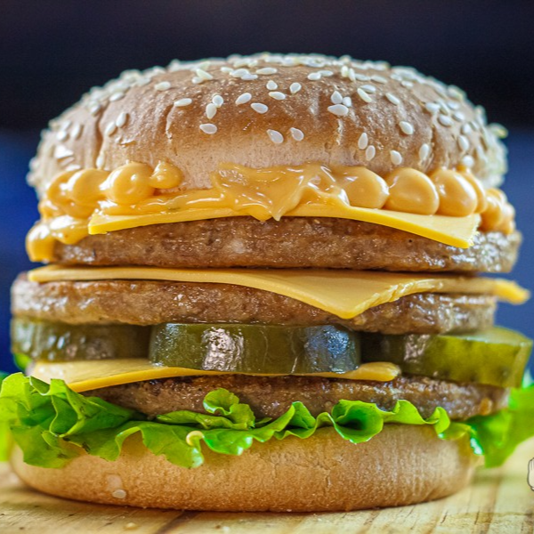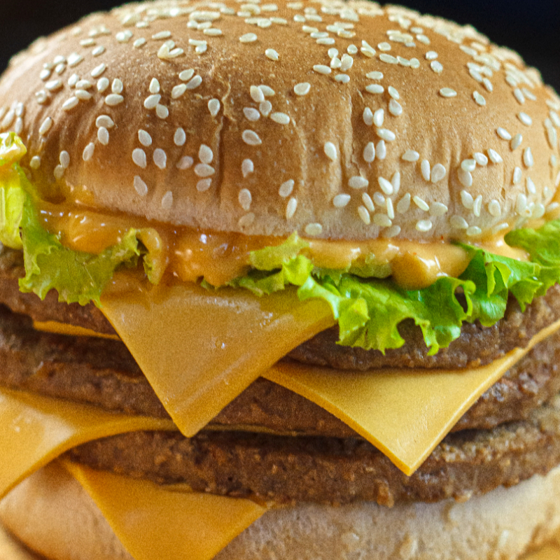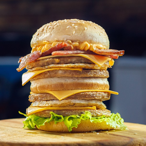 Triplo x Picanha (Pão Big com Gergilim , 3 carnes sabor picanha de 120g cada , 4 fatias de queijo cheddar molho e salada)