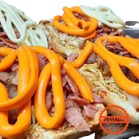 Cachorro quente Prensado, além dos igredientes básicos a sua escolha , leva Bacon,Calabresa,Frango,Carne,Requeijão e Cheddar.