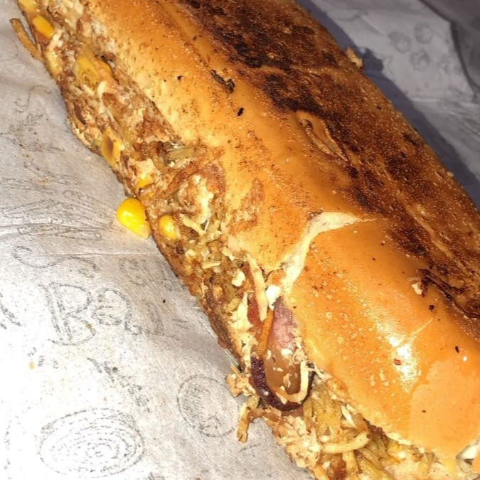 Salsicha ou Linguiça, frango, Catupiry, milho, ervilha, tomate, cebola, ketchup, maionese e batata palha.