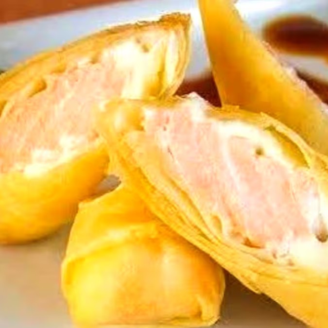 Harumaki com a combinação do sabor do frango bem temperado com a cremosidade do cream cheese.