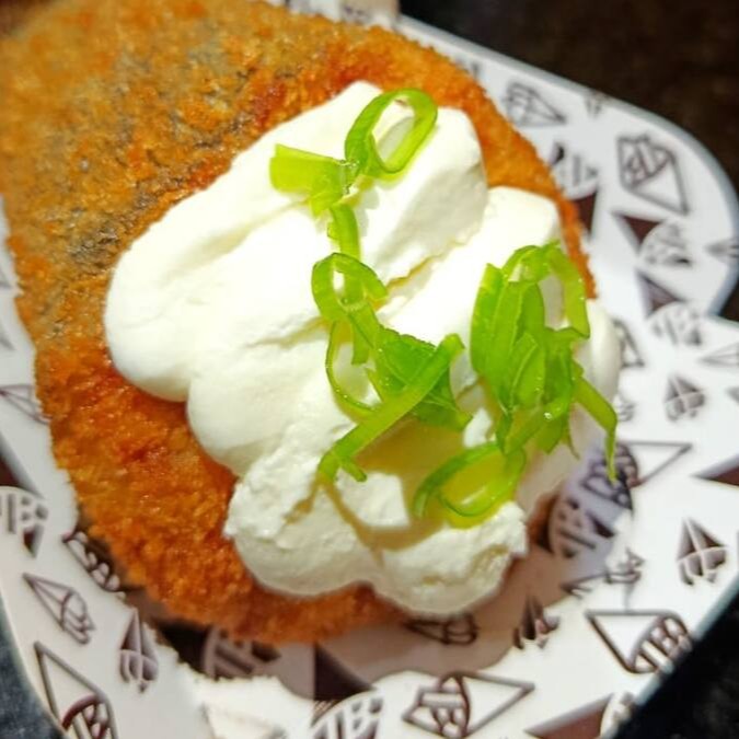 Salmão crocante, arroz, cream cheese e cebolinha, empanado e frito até ficar dourado. Uma explosão de sabor com crocância por fora e cremosidade por dentro!