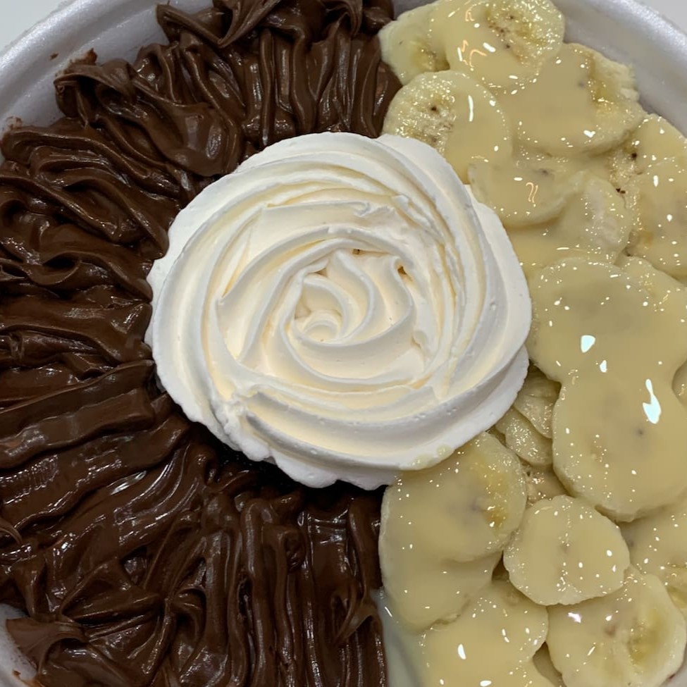 Delicioso açaí, Bananas Fatiadas, Uma Camada Generosa de Nutella e Chantilly