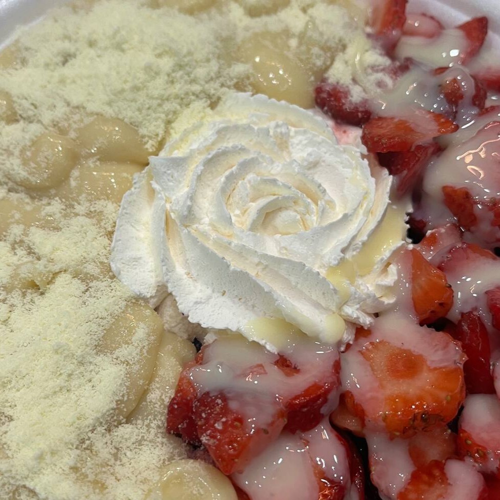 Delicioso Açaí, Morangos Fatiados, Uma Camada Generosa de Creme de Ninho e Chantilly