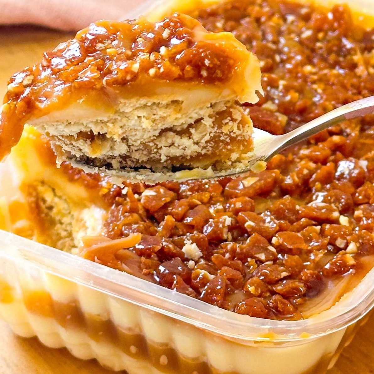 Sobremesa tradicional que todo mundo ama... Pavê cremoso e mega crocante. Preparado com nosso creme Prismar, doce de leite caseiro, biscoito maizena e finalizado com crocante de caju.
