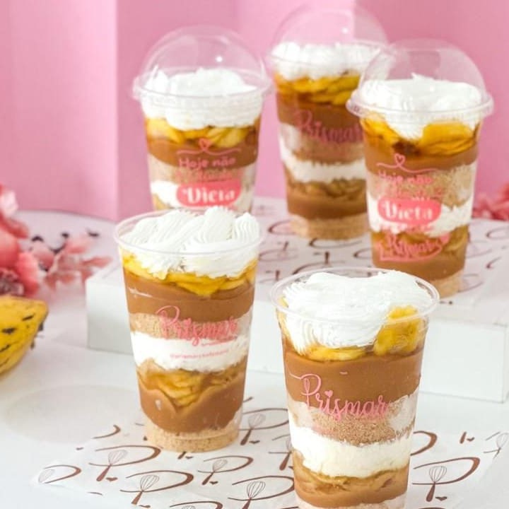 Uma explosão de Sabor. Farofa de biscoito, brigadeiro doce de leite, doce de leite cremoso, banana, chantilly finalizado com cacau. Nossa banoffee é feito com banana prata caramelizada, deixamos a banana mais durinha para não perder a essência da tradicional sobremesa.