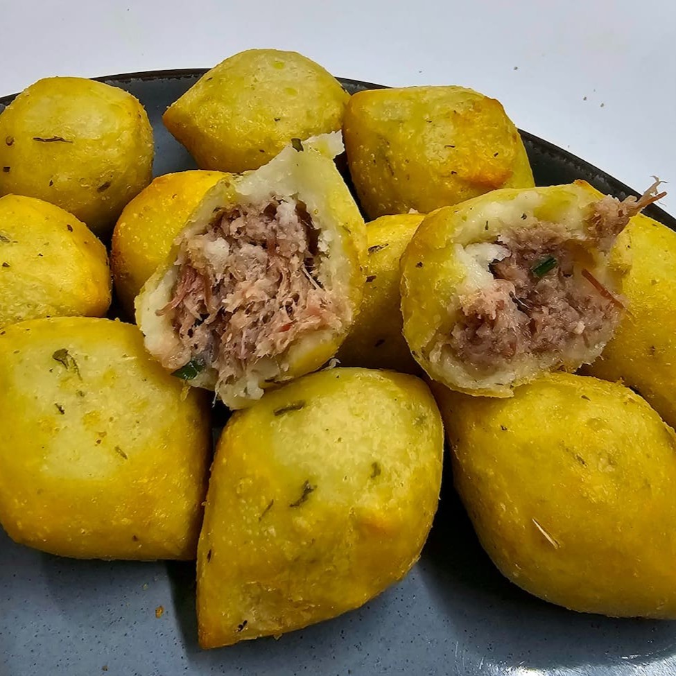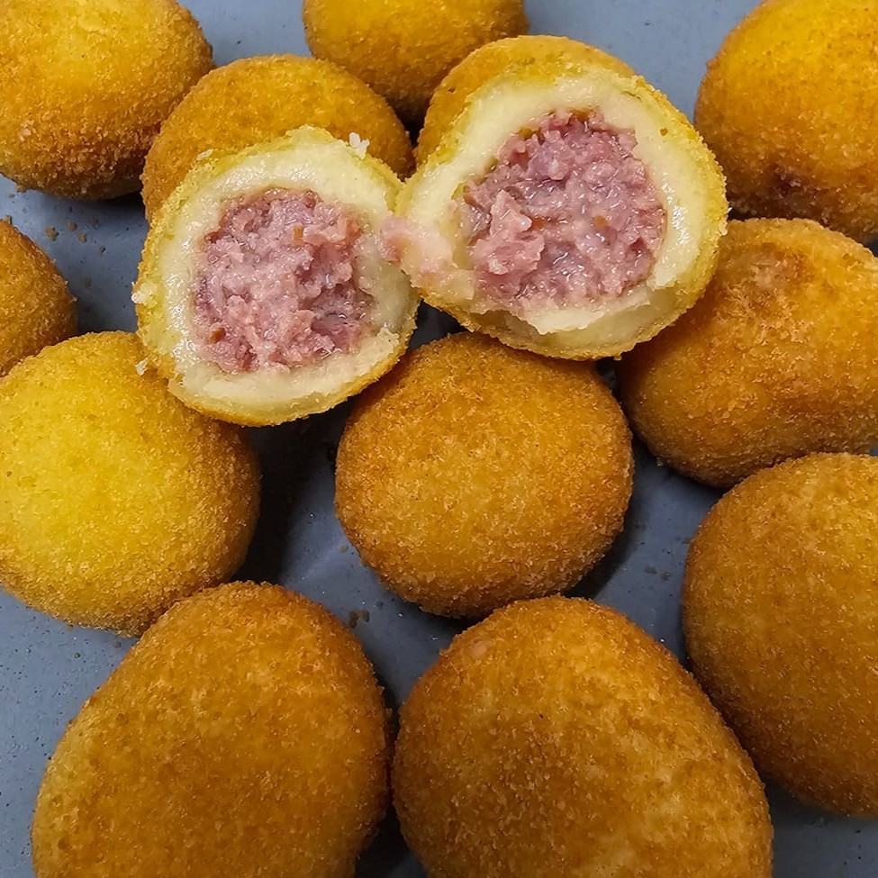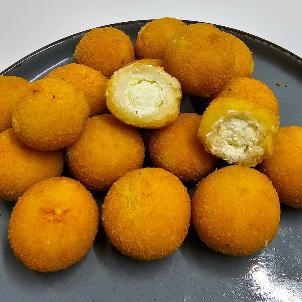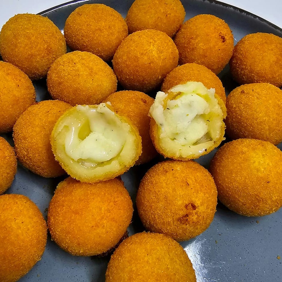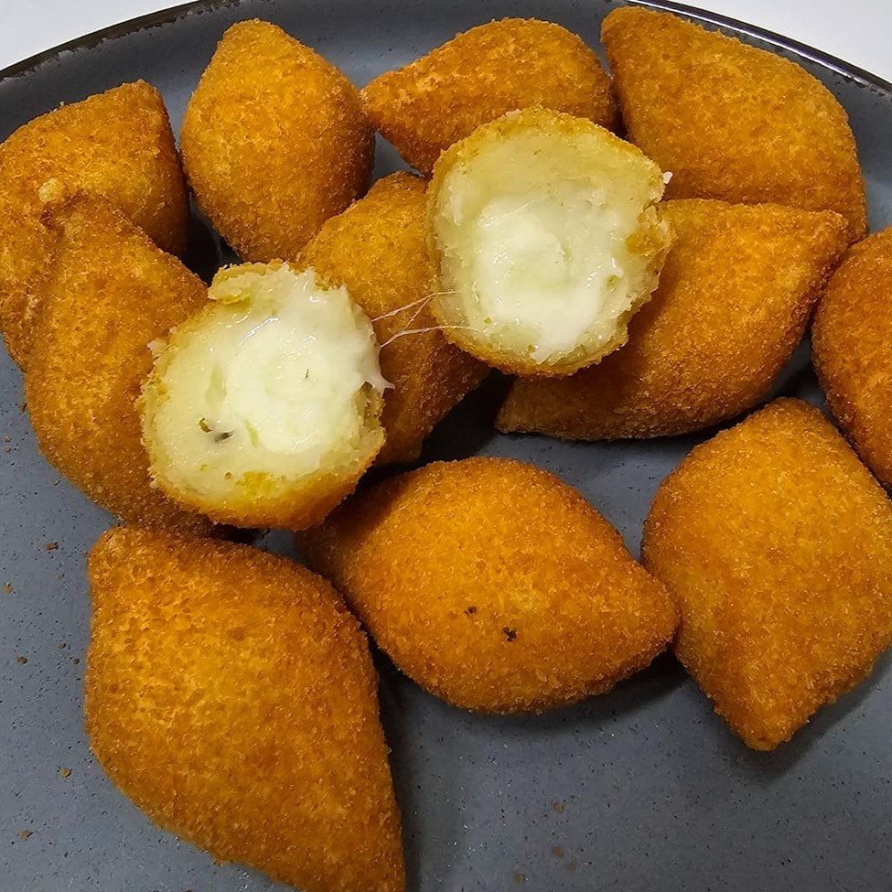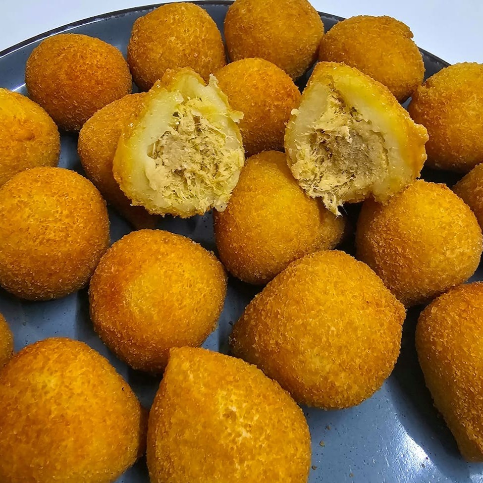 Saboreie nossos bolinhos de bacalhau: uma explosão de sabor português em cada mordida! Crocantes por fora, macios por dentro e recheados com o delicioso bacalhau. Uma tentação imperdível!