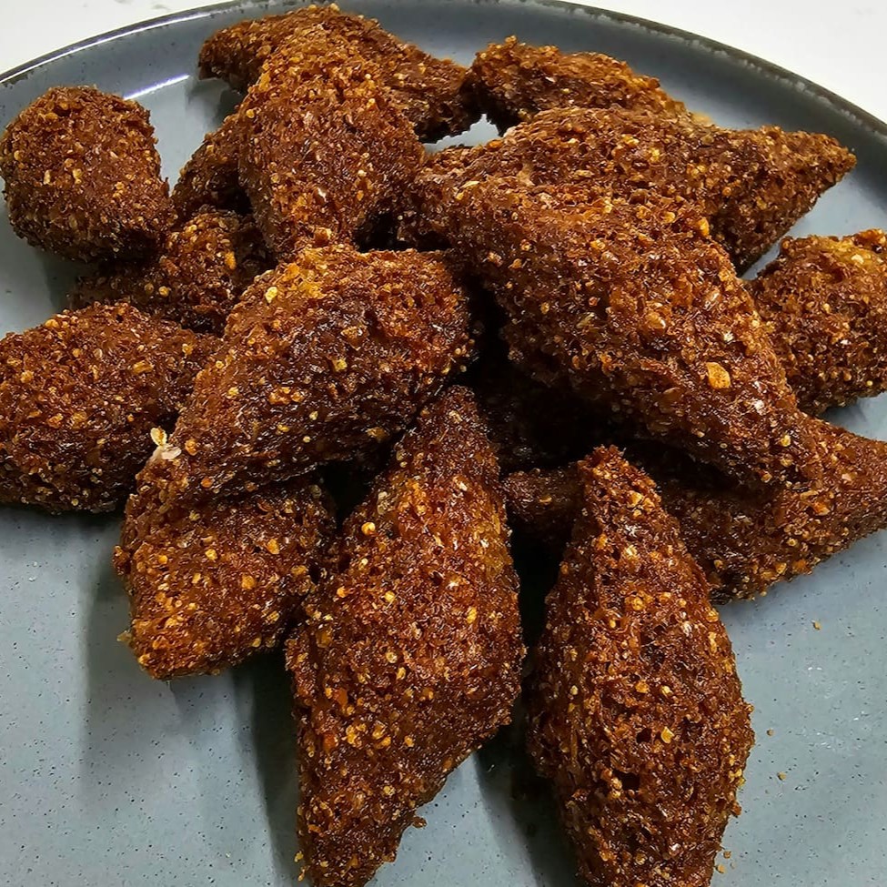Massa de carne moida com trigo e hortelã recheada com Cream Cheese
