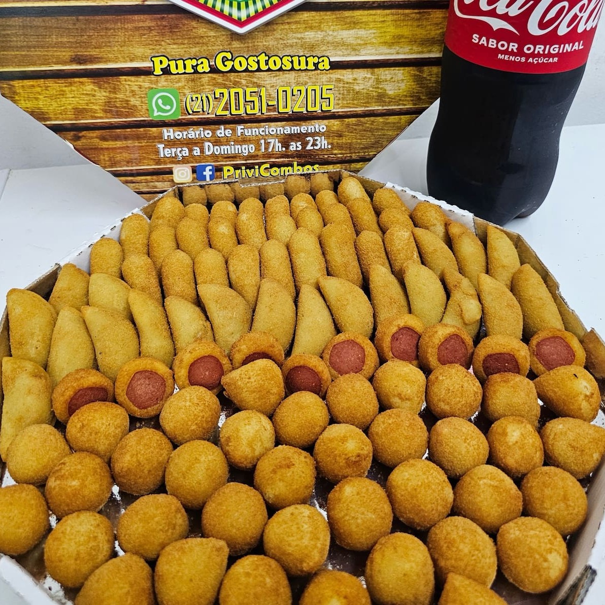 Prove nossos deliciosos salgadinhos e descubra como a Coca-Cola complementa perfeitamente o sabor e a crocância de cada mordida. Uma explosão de sabores em cada combo!