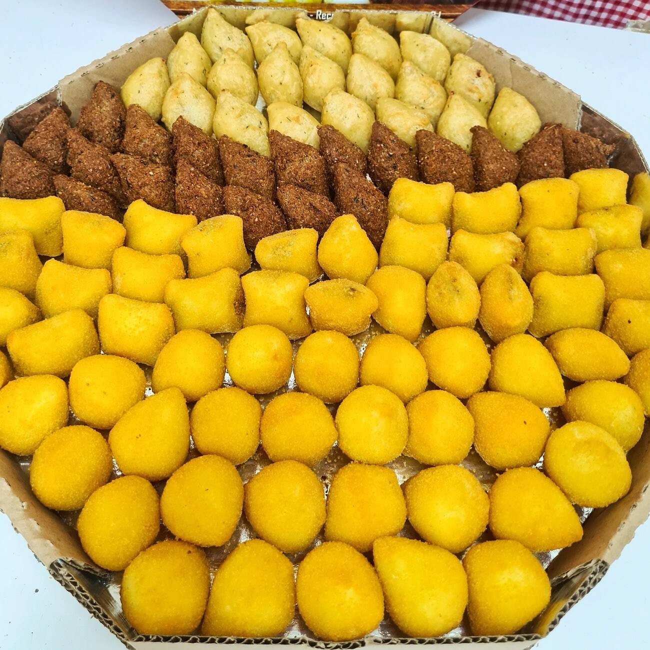 Até 20 sabores a sua escolha. Desfrute dos nossos salgadinhos fritos: preparados com ingredientes frescos e recheados com sabores irresistíveis. Uma opção deliciosa para qualquer ocasião!