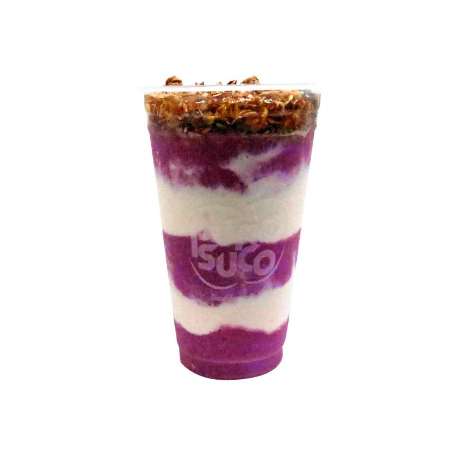 Açaí e creme de tapioca c/ côco. Servido com granola, côco ralado e mel (contém derivados do leite).
