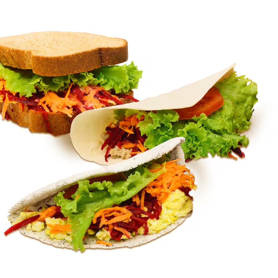 Monte o seu sanduba natural com carne de jaca! Escolha o pão e até 05 complementos!