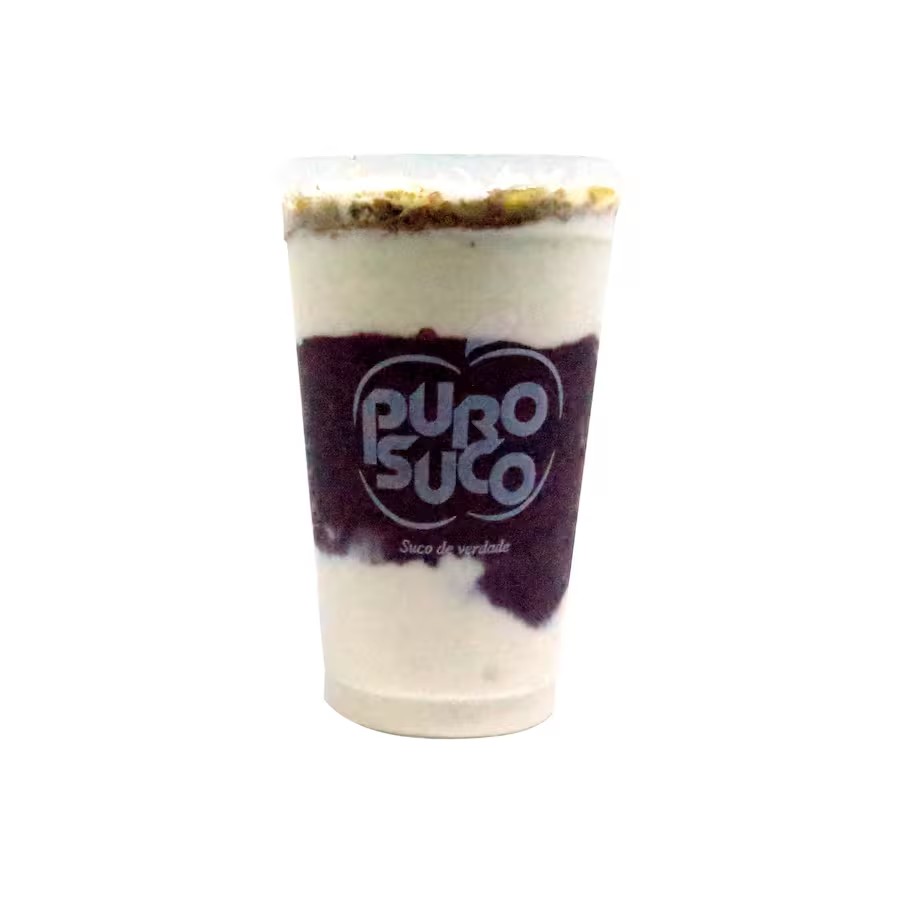 Açaí e creme de cupuaçu. Servido com granola e mel (contém derivados do leite).
