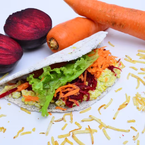 Monte o seu sanduba em um biju de tapioca com carne de jaca e até 05 complementos!