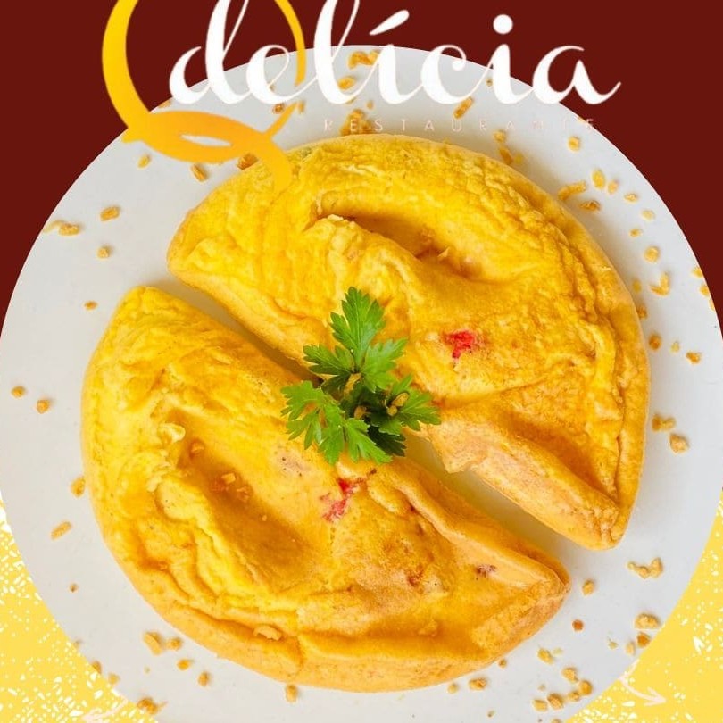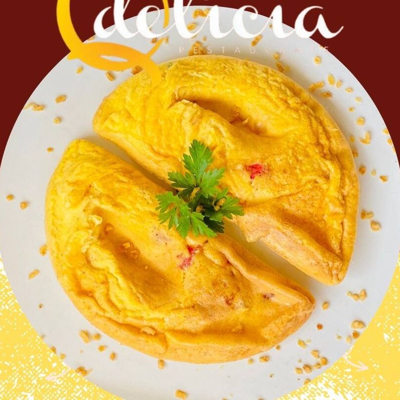 Deliciosa omelete de Muçarela com calabresa , cebola , tomate e salsinha.