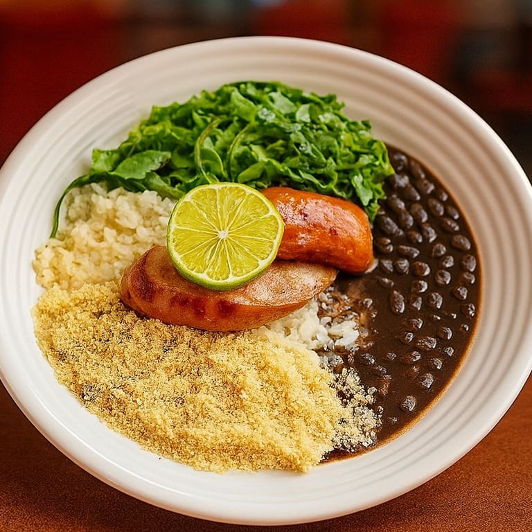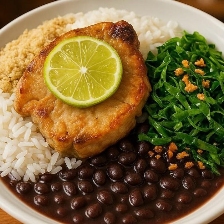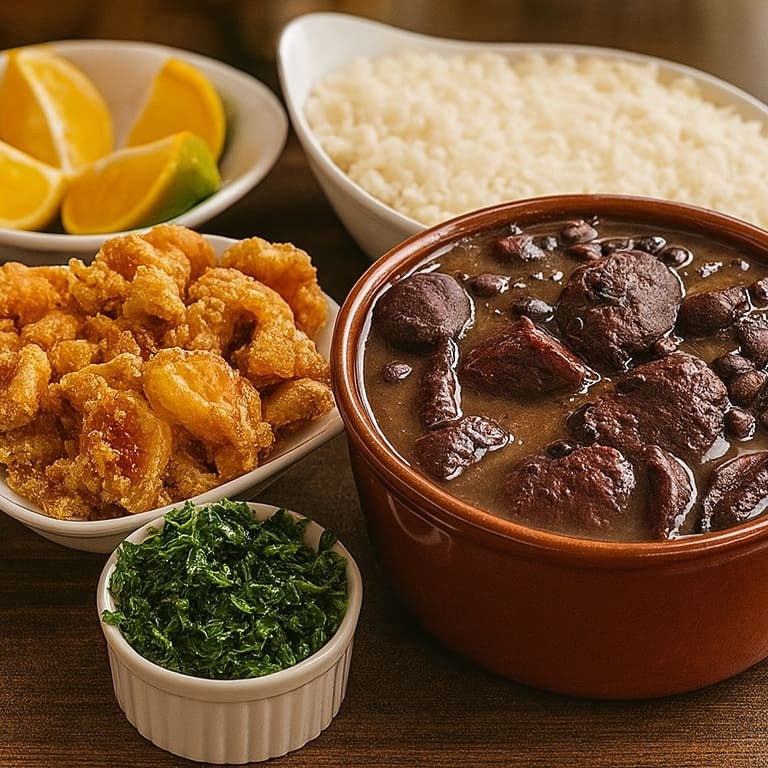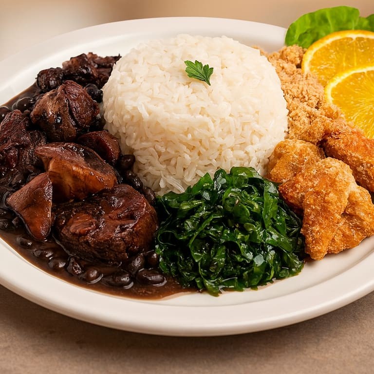 Deliciosa feijoada caprichada. Acompanha Arroz , farofa , torresmo e couve.