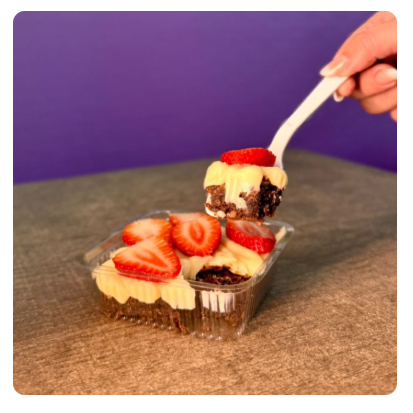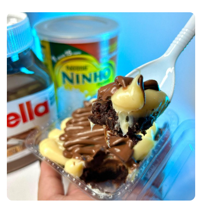 Duas camadas de brigadeiro de ninho, brownie fresquinho no meio, duas camadas chantilly, finalizado com Nutella, morangos frescos, um docinho de ninho e um de brigadeiro. A combinação perfeita para adoçar o seu dia!