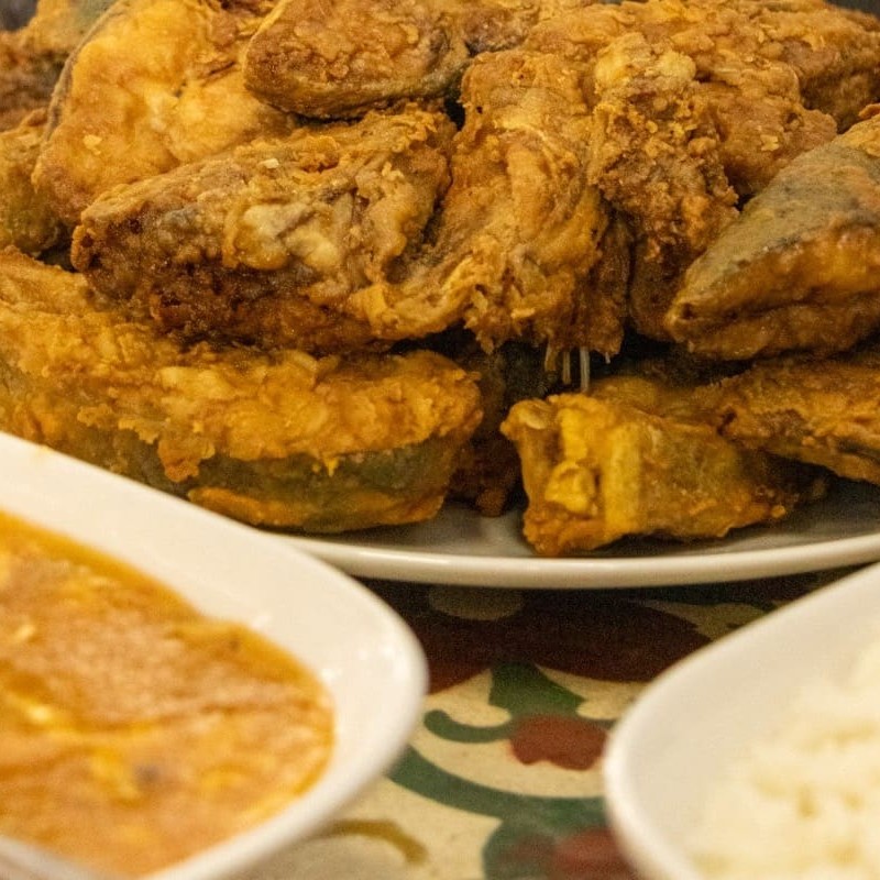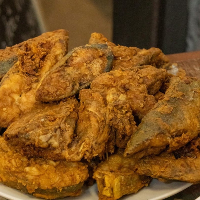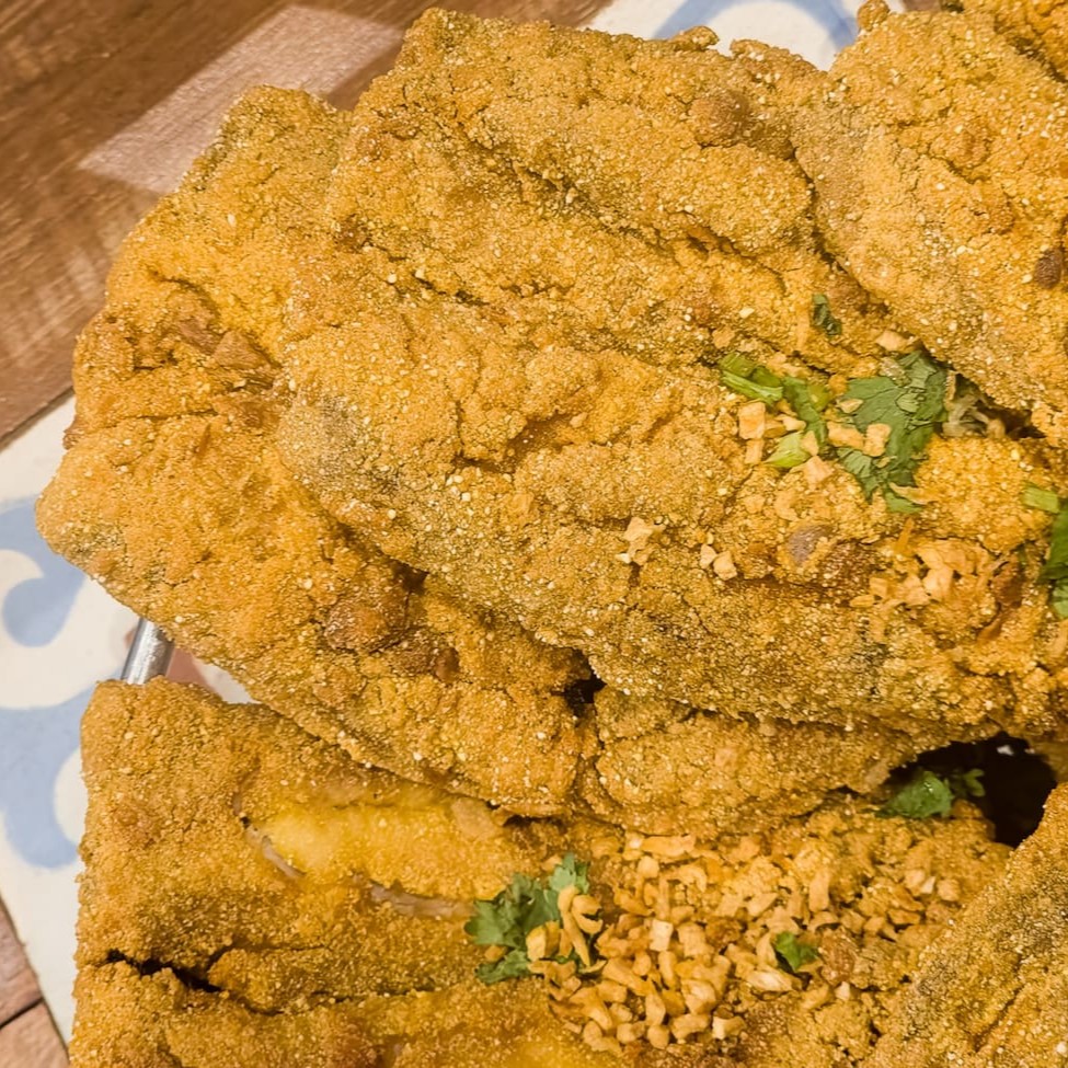 Peixe Frito* Peixe frito acompanhado de arroz, pirão, salada e farofa.