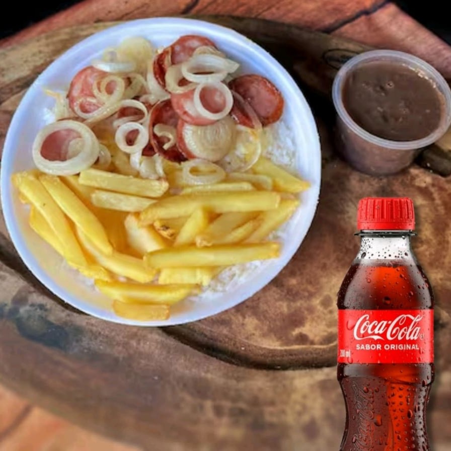 Quentinha Calabresa Acebolada + Coca Cola Normal Ou Zero 200ml