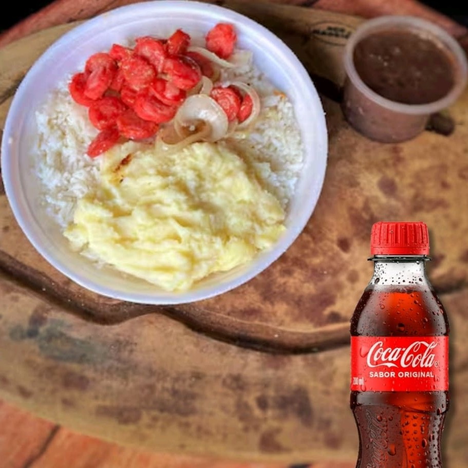 Quentinha De Linguiça A Mineira Acebolada + Coca Cola Normal Ou Zero 200ml