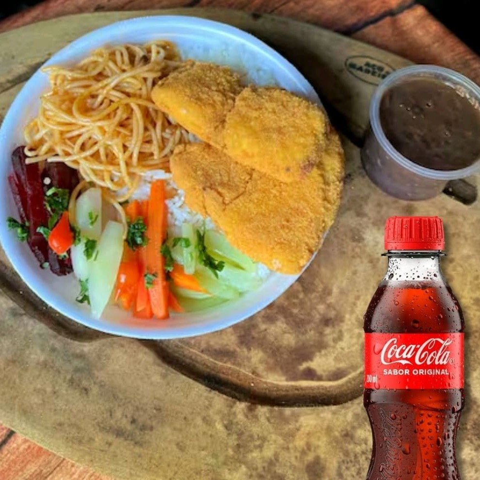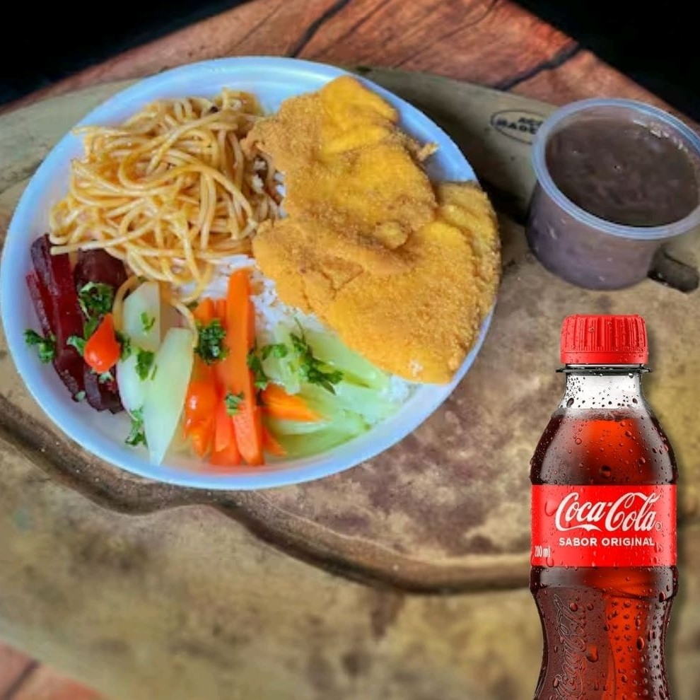 Quentinha File De Peixe Empanado + Coca Cola Normal Ou Zero 200ml