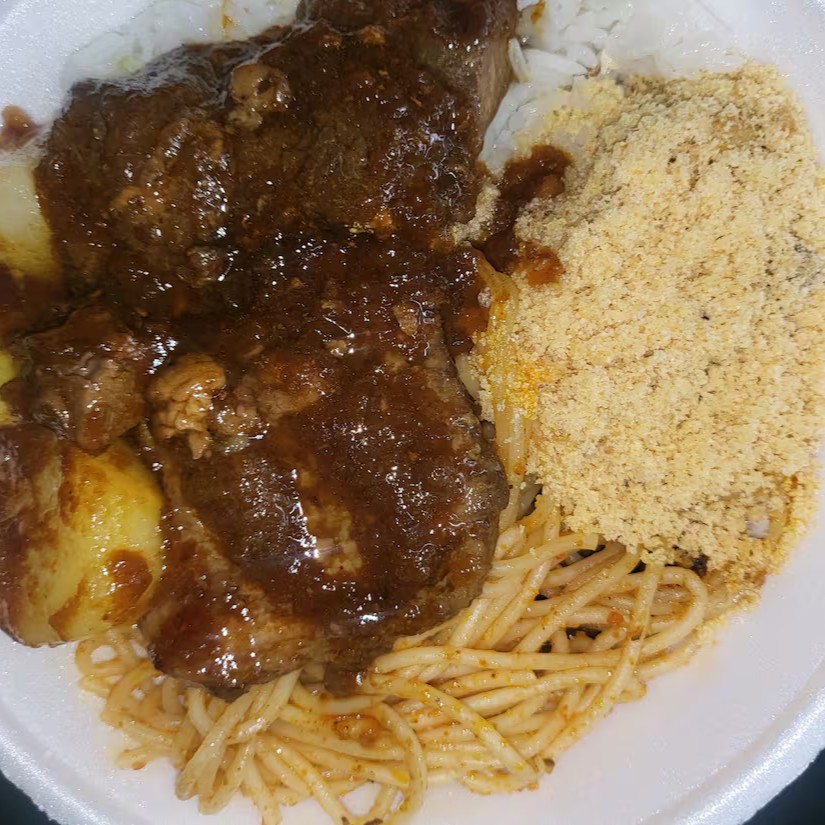 Acompanhamento: arroz, feijão, macarrão e farofa