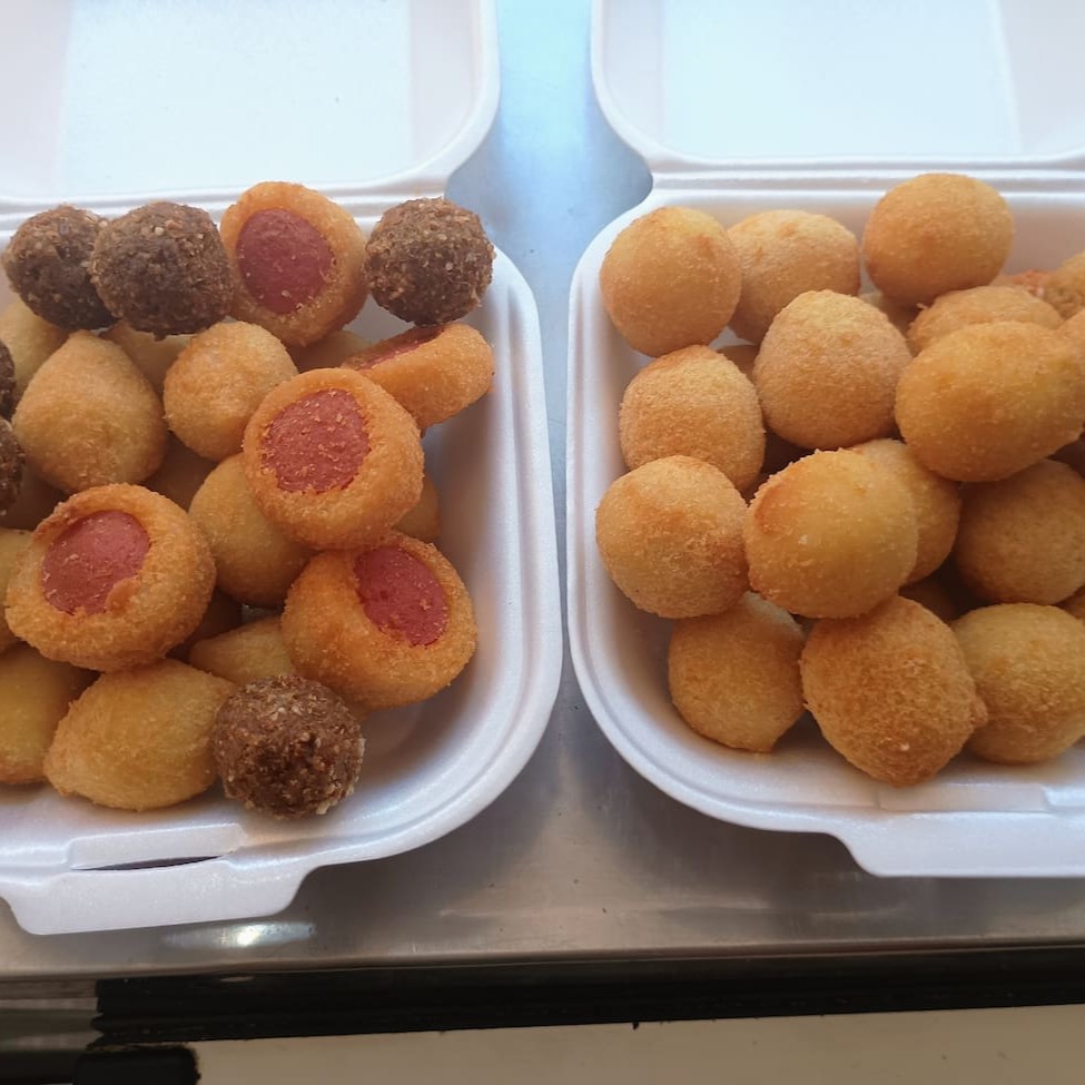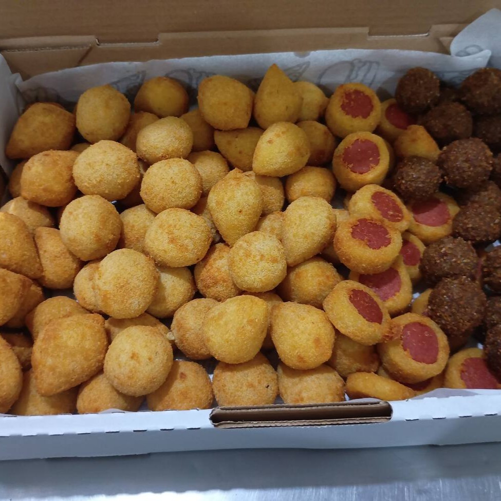 100 salgadinhos sortidos + 25 mini churros de doce de leite +1 Coca Cola de 2 litros. Desfrute dos nossos deliciosos salgadinhos bolinha de queijo, bolinha de pizza, enroladinho de salsicha, coxinha de frango, queijo com alho, queijo com calabresa, mini kibes, enroladinho de presunto e queijo, bolinha de carne moída. Salgadinhos fritos na hora.