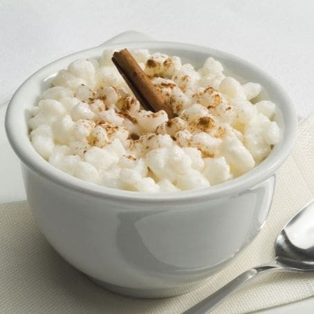 Canjica com leite condensado, creme de leite, leite de coco, coco ralado, cravo e canela.