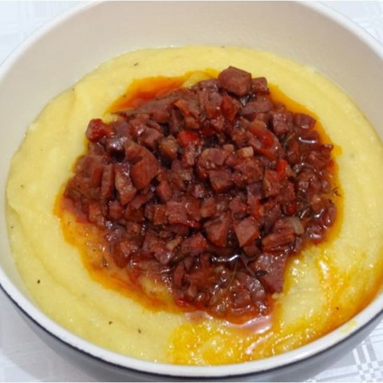 Tradicional angu com carne moida e linguiça calabresa.