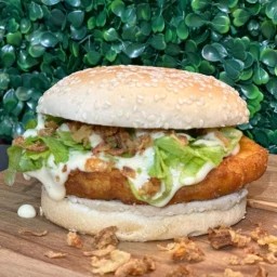 Pão - Frango empanado - alface americano - cebola crispy - molho parmesão